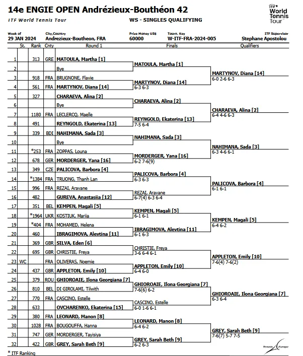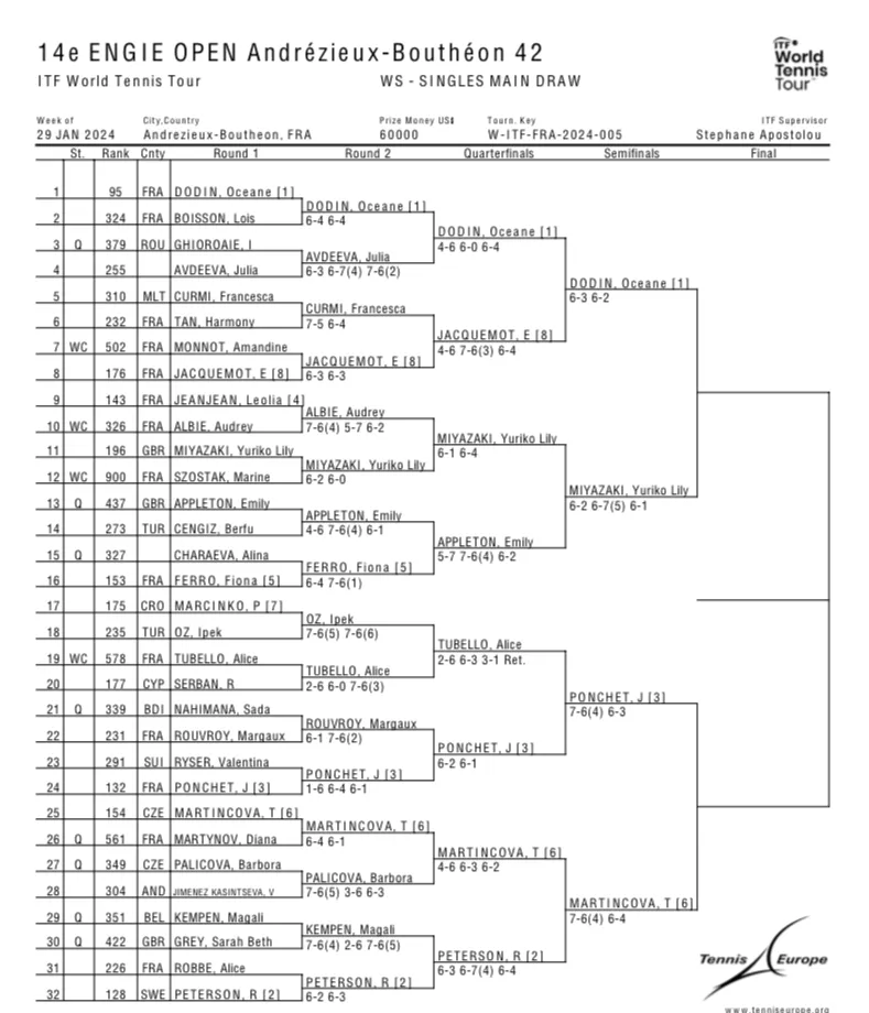 Mise à jour lundi 6h : C'est la Britannique Yuriko Miyazaki qui s'est imposée ce dimanche. Elle a battu Jessika Ponchet en trois sets 3/6 6/4 6/1. Elle succède ainsi à Océane Dodin qui s'était imposée pour la 13e édition.