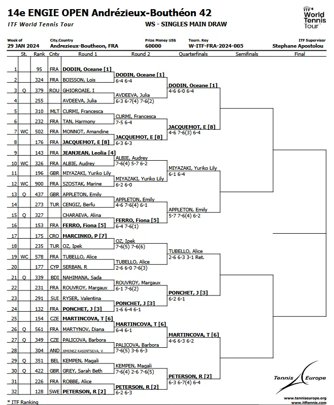La 14ème édition de l’Engie Open d’Andrézieux a débuté ce lundi. Le tournoi international féminin va durer jusqu’à dimanche. Il est organisé par le Tennis Club Andrézieux-Bouthéon (le TCAB). Des joueuses de tennis professionnelles vont s’affronter lors de matchs qui se jouent exclusivement au sein du Tennis Club d’Andrézieux-Bouthéon, demies-finale et finale comprises.